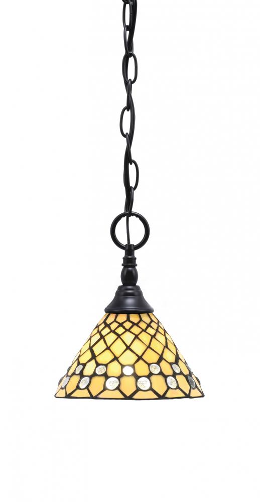 Toltec Lighting 11-MB-9415 Chain Hung Mini Pendant, Matte Black Finish, 7 Starlight Art Glass