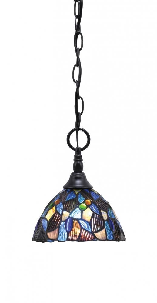 Toltec Lighting 11-MB-9955 Chain Hung Mini Pendant, Matte Black Finish, 7 Blue Mosaic Art Glass