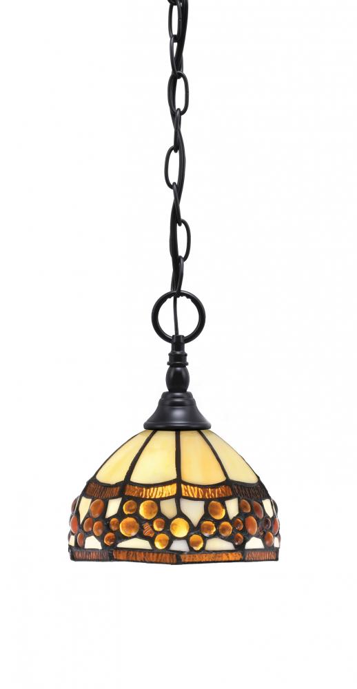 Toltec Lighting 11-MB-9975 Chain Hung Mini Pendant, Matte Black Finish, 7 Roman Jewel Art Glass