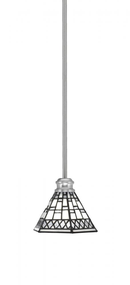 Toltec Lighting 1151-BN-9105 Edge Stem Hung Mini Pendant, Brushed Nickel Finish, 7 Pewter Art Glass