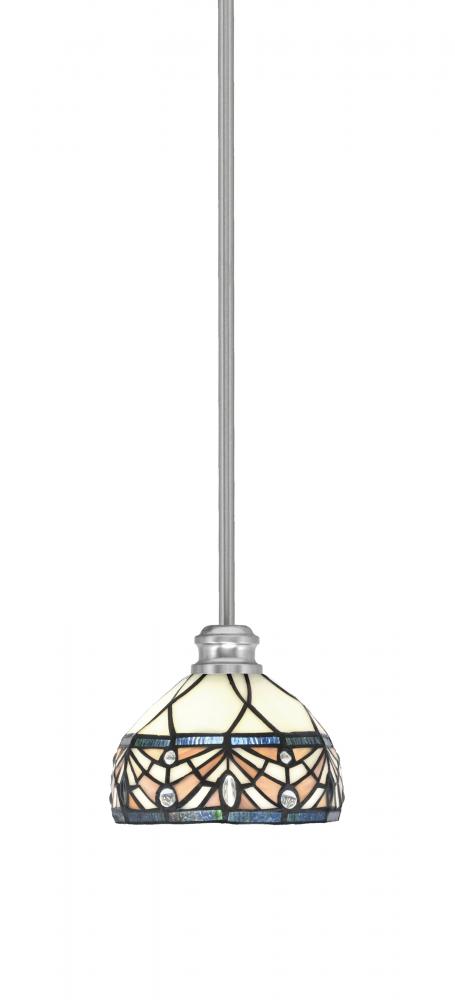 Toltec Lighting 1151-BN-9485 Edge Stem Hung Mini Pendant, Brushed Nickel Finish, 7 Royal Merlot Art Glass