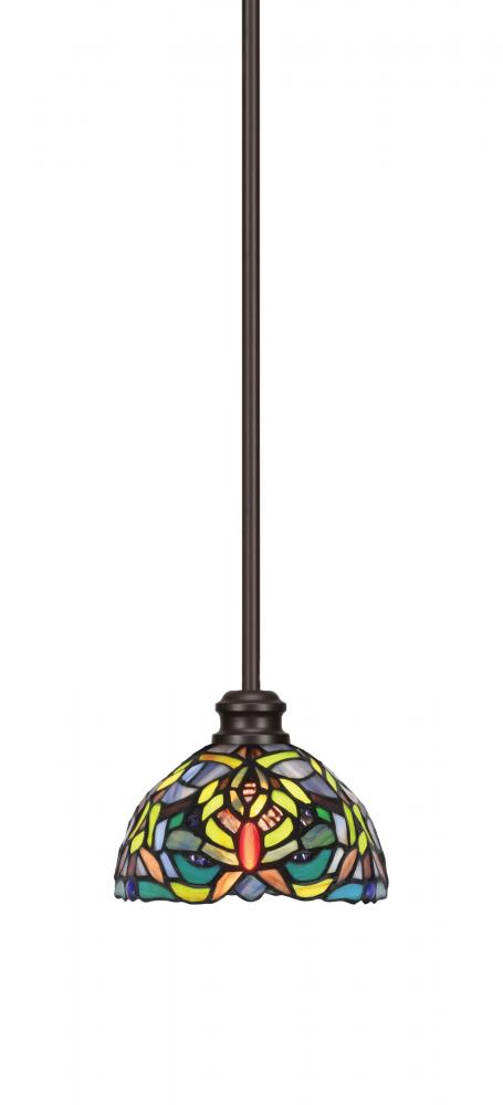 Toltec Lighting 1151-ES-9905 Edge Stem Hung Mini Pendant, Espresso Finish, 7 Kaleidoscope Art Glass