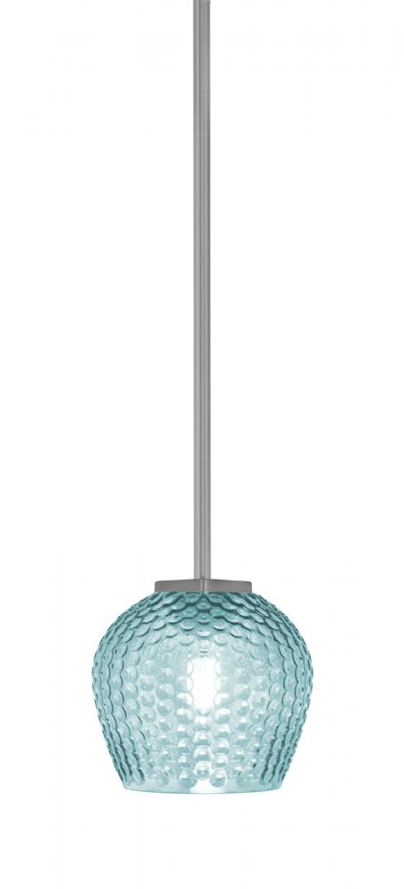 Franklin Stem Hung Mini Pendant Shown In Graphite Finish With 6 Turquoise Textured Glass