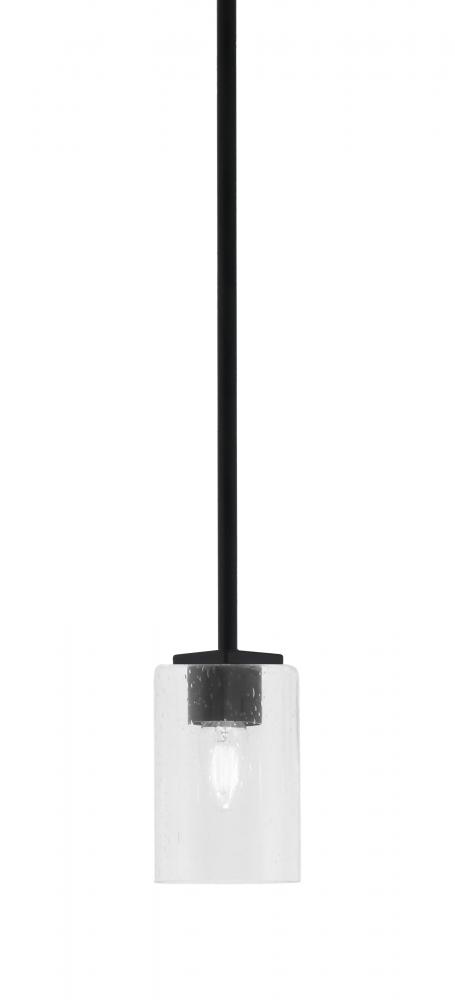 Franklin Stem Hung Mini Pendant Shown In Matte Black Finish With 4 Clear Bubble Glass