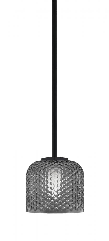 Franklin Stem Hung Mini Pendant Shown In Matte Black Finish With 6 Smoke Textured Glass