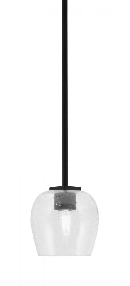 Franklin Stem Hung Mini Pendant Shown In Matte Black Finish With 6 Clear Bubble Glass