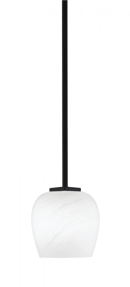 Franklin Stem Hung Mini Pendant Shown In Matte Black Finish With 6 White Marble Glass