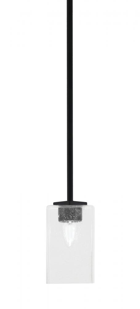 Franklin Stem Hung Mini Pendant Shown In Matte Black Finish With 4 Square Clear Bubble Glass