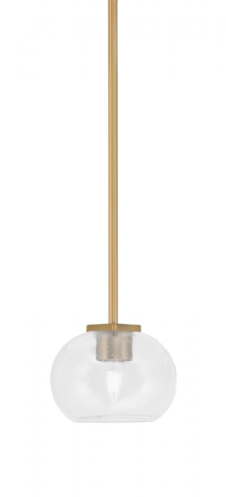 Franklin Stem Hung Mini Pendant Shown In New Age Brass Finish With 7 Clear Bubble Glass