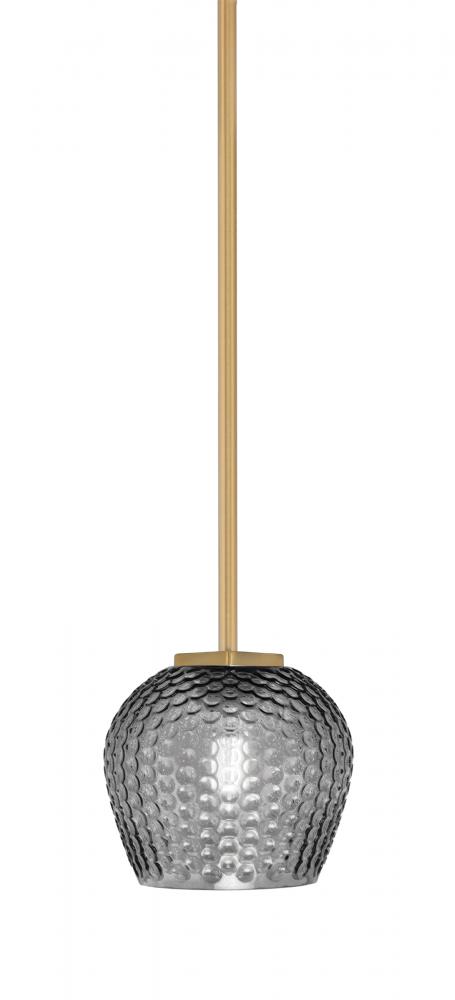 Franklin Stem Hung Mini Pendant Shown In New Age Brass Finish With 6 Smoke Textured Glass