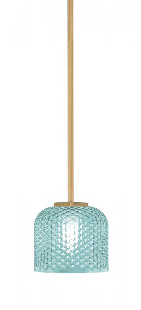Franklin Stem Hung Mini Pendant Shown In New Age Brass Finish With 6 Turquoise Textured Glass