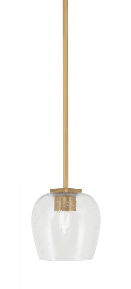 Franklin Stem Hung Mini Pendant Shown In New Age Brass Finish With 6 Clear Bubble Glass