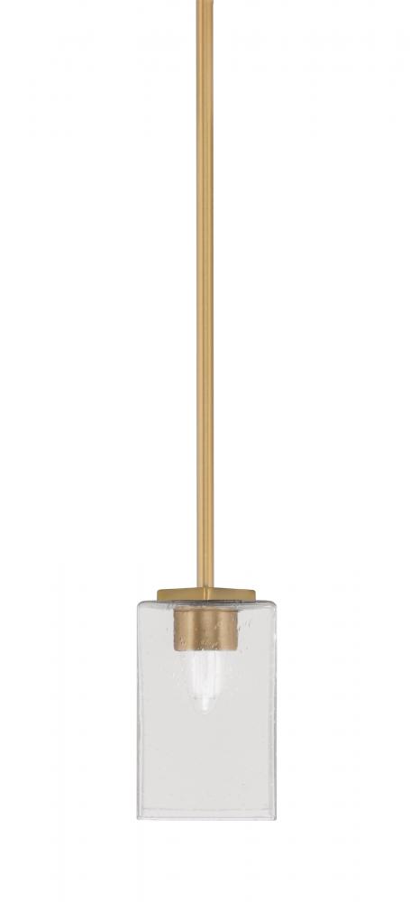 Franklin Stem Hung Mini Pendant Shown In New Age Brass Finish With 4 Square Clear Bubble Glass