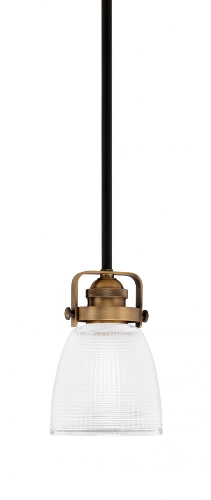Toltec Lighting 1941-MBBR-500 Easton Stem Hung Mini Pendant With Hang Straight Swivel Shown In Matte Black & Brass Finish With 5 Clear Ribbed Glass
