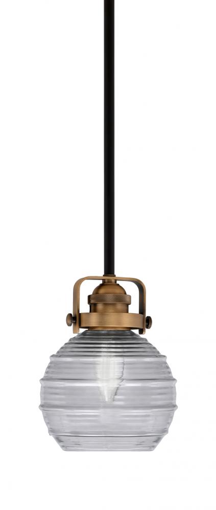 Toltec Lighting 1941-MBBR-5112 Easton Stem Hung Mini Pendant With Hang Straight Swivel Shown In Matte Black & Brass Finish With 6 Smoke Ribbed Glass
