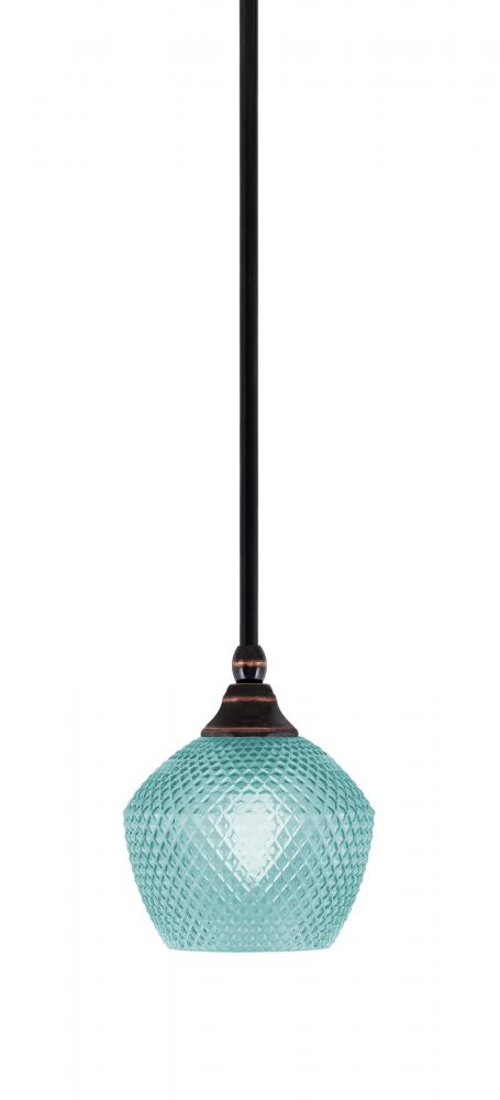 Toltec Lighting 23-BC-4625 Stem Hung Mini Pendant, Black Copper Finish, 6 Turquoise Textured Glass