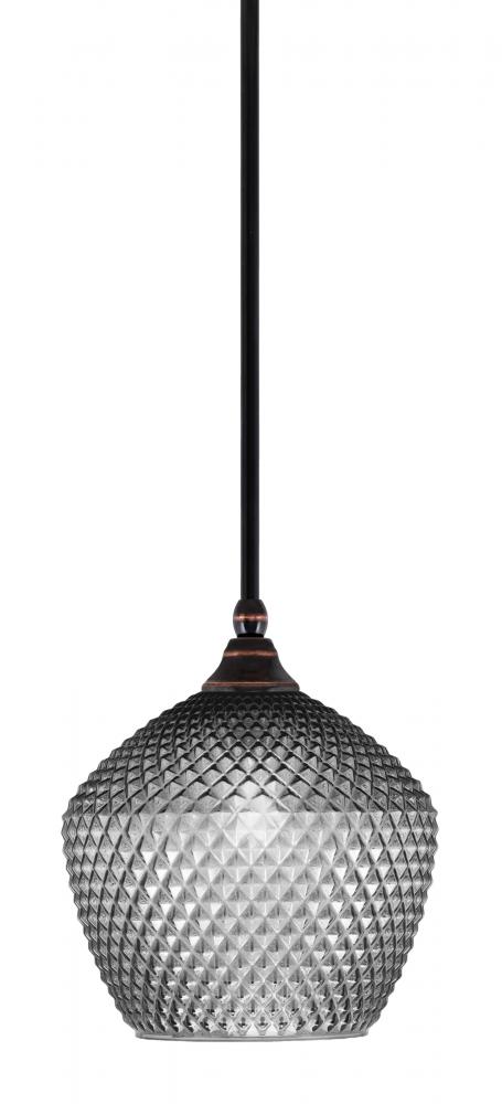 Toltec Lighting 23-BC-4922 Stem Hung Mini Pendant, Black Copper Finish, 9 Smoke Textured Glass