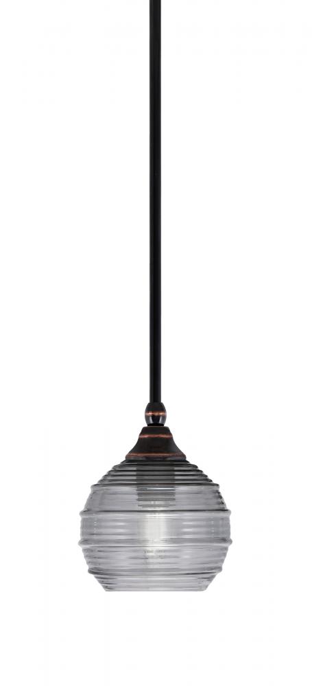 Toltec Lighting 23-BC-5112 Stem Hung Mini Pendant, Black Copper Finish, 6 Smoke Ribbed Glass
