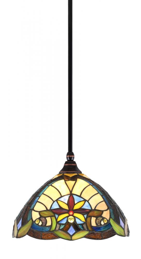 Toltec Lighting 23-BC-9369 Stem Hung Mini Pendant, Black Copper Finish, 12 Earth Star Art Glass