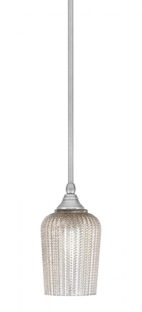 Toltec Lighting 23-BN-4253 Stem Hung Mini Pendant, Brushed Nickel Finish, 5 Silver Textured Glass