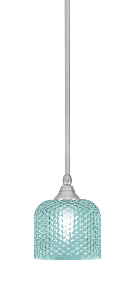 Toltec Lighting 23-BN-4615 Stem Hung Mini Pendant, Brushed Nickel Finish, 6 Turquoise Textured Glass