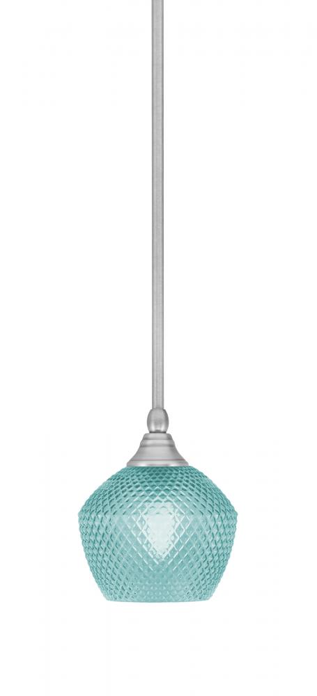 Toltec Lighting 23-BN-4625 Stem Hung Mini Pendant, Brushed Nickel Finish, 6 Turquoise Textured Glass