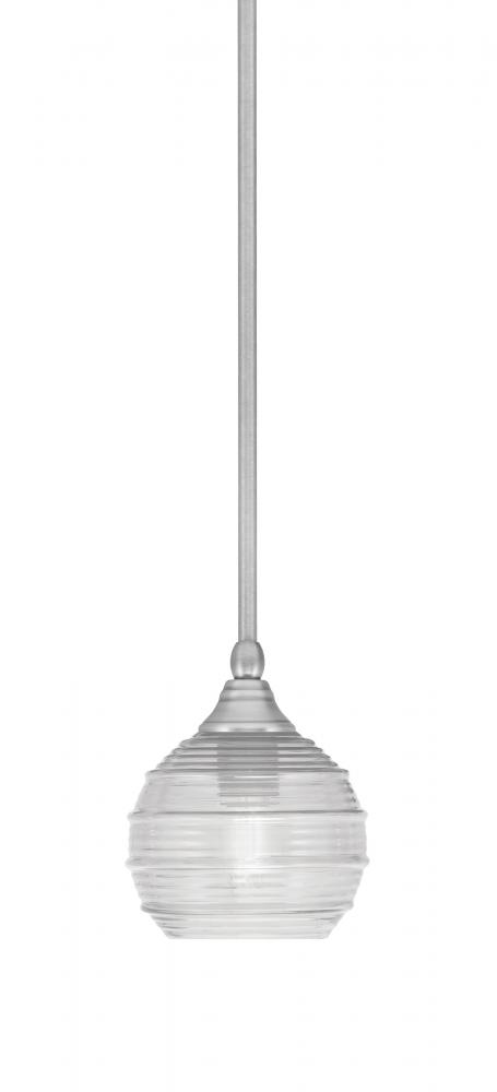 Toltec Lighting 23-BN-5110 Stem Hung Mini Pendant, Brushed Nickel Finish, 6 Clear Ribbed Glass