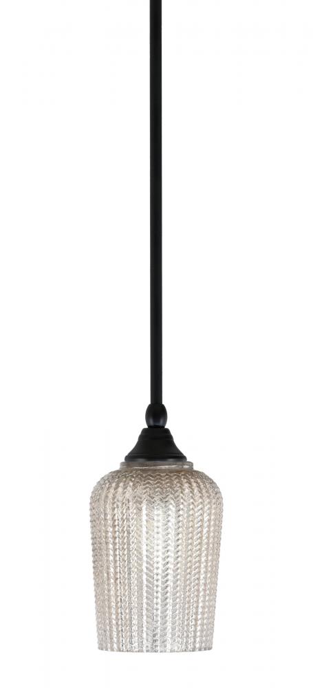 Toltec Lighting 23-MB-4253 Stem Hung Mini Pendant, Matte Black Finish, 5 Silver Textured Glass