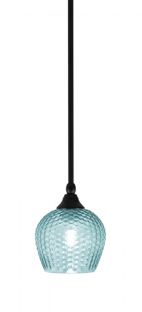 Toltec Lighting 23-MB-4605 Stem Hung Mini Pendant, Matte Black Finish, 6 Turquoise Textured Glass
