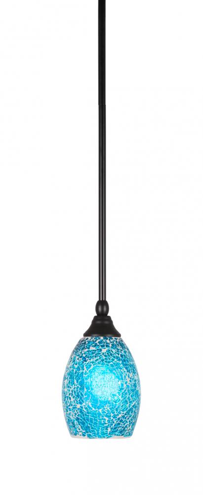 Stem Mini Pendant With Hang Straight Swivel Shown In Matte Black Finish With 5 Turquoise Fusion Glass