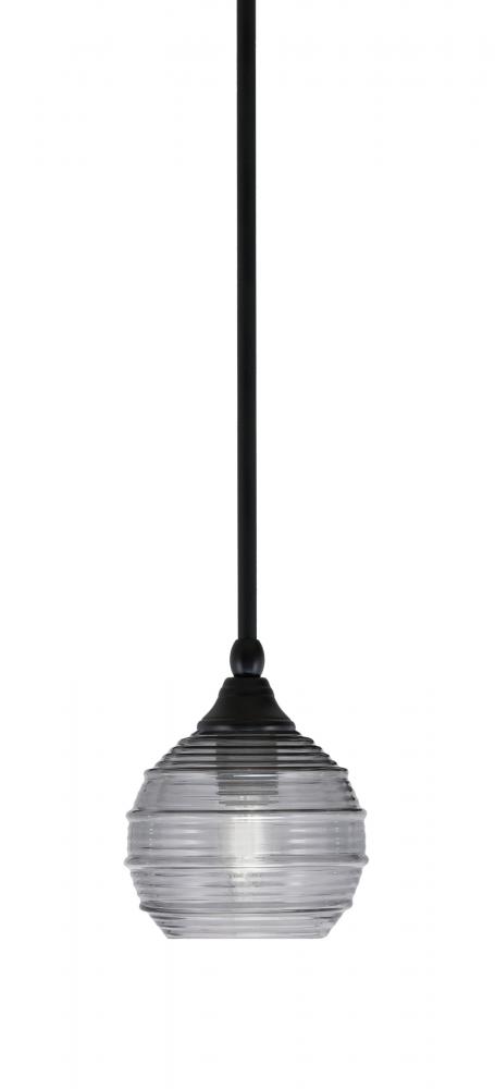 Toltec Lighting 23-MB-5112 Stem Hung Mini Pendant, Matte Black Finish, 6 Smoke Ribbed Glass