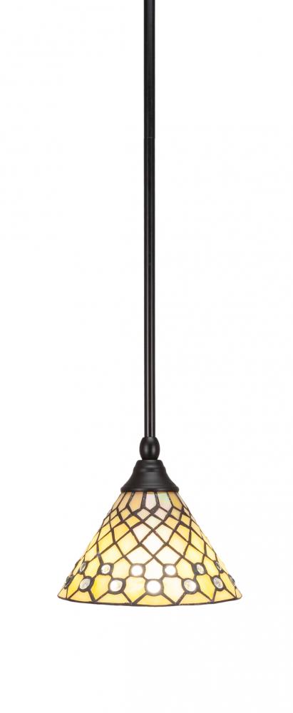 Stem Mini Pendant With Hang Straight Swivel Shown In Matte Black Finish With 7 Starlight Art Glass