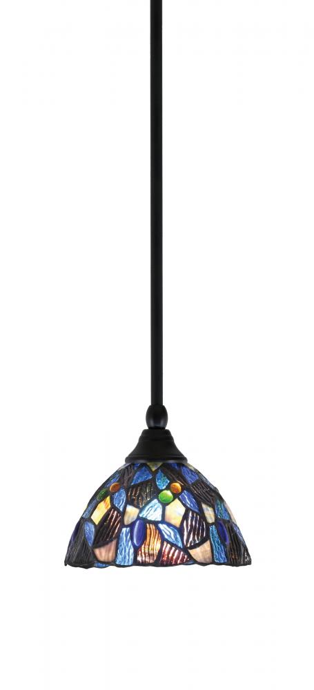 Toltec Lighting 23-MB-9955 Stem Hung Mini Pendant, Matte Black Finish, 7 Blue Mosaic Art Glass