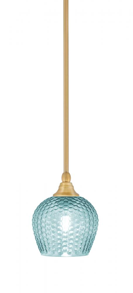 Toltec Lighting 23-NAB-4605 Stem Hung Mini Pendant, New Age Brass Finish, 6 Turquoise Textured Glass
