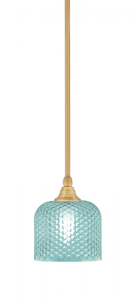 Toltec Lighting 23-NAB-4615 Stem Hung Mini Pendant, New Age Brass Finish, 6 Turquoise Textured Glass