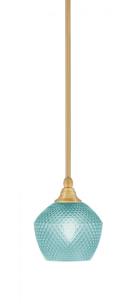 Toltec Lighting 23-NAB-4625 Stem Hung Mini Pendant, New Age Brass Finish, 6 Turquoise Textured Glass