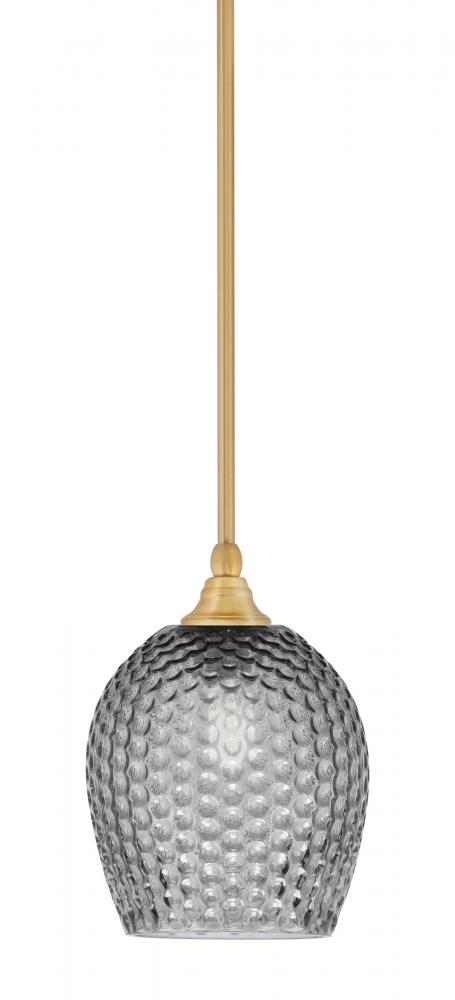 Toltec Lighting 23-NAB-4902 Stem Hung Mini Pendant, New Age Brass Finish, 7.5 Smoke Textured Glass