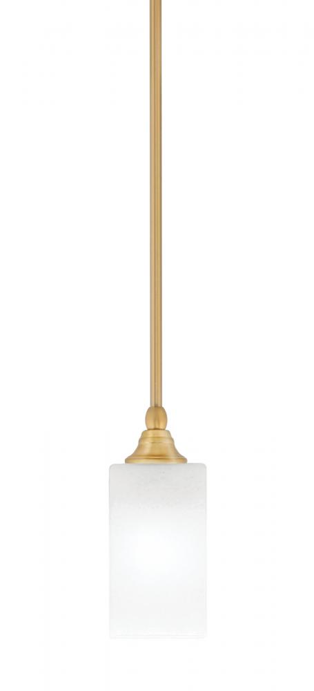 Toltec Lighting 23-NAB-541 Stem Hung Mini Pendant, New Age Brass Finish, 3.5 Square White Marble Glass