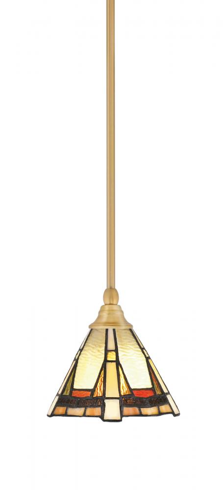 Toltec Lighting 23-NAB-9345 Stem Hung Mini Pendant, New Age Brass Finish, 7 Zion Art Glass