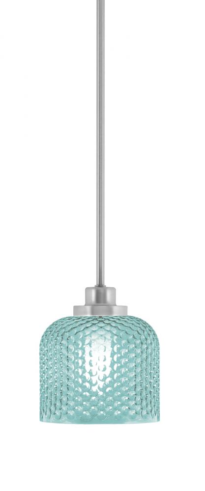 Odyssey Stem Hung Mini Pendant Shown In Brushed Nickel Finish With 6 Turquoise Textured Glass