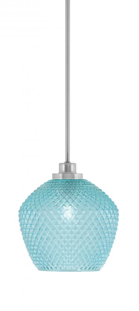 Odyssey Stem Hung Mini Pendant Shown In Brushed Nickel Finish With 9 Turquoise Textured Glass