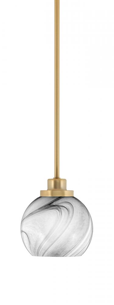 Toltec Lighting 2601-NAB-4109 Odyssey Stem Hung Mini Pendant, New Age Brass Finish, 5.75 Onyx Swirl Glass