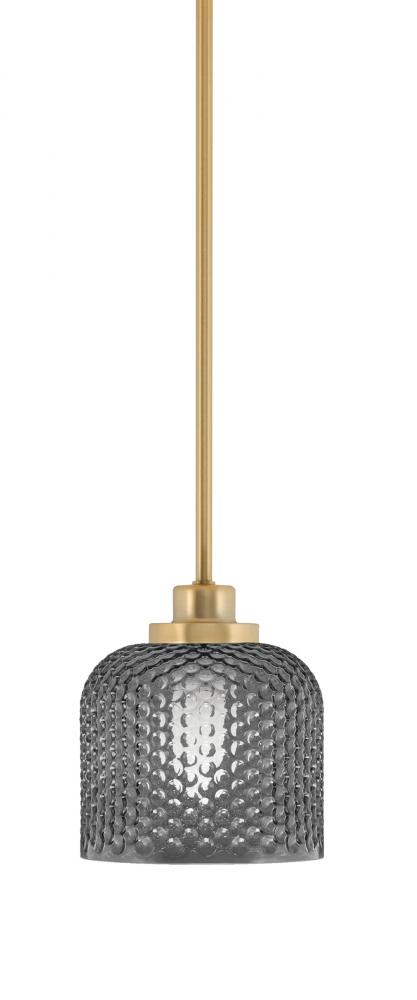 Odyssey Stem Hung Mini Pendant Shown In New Age Brass Finish With 6 Smoke Textured Glass