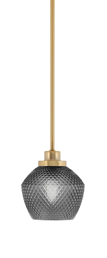 Odyssey Stem Hung Mini Pendant Shown In New Age Brass Finish With 6 Smoke Textured Glass