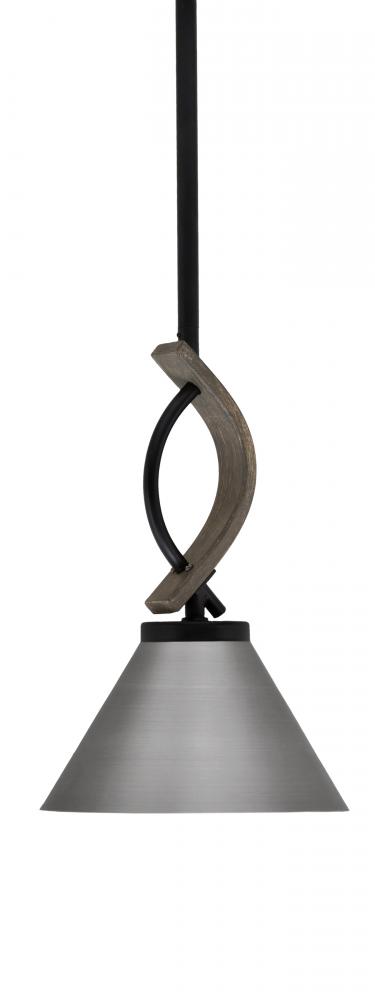 Toltec Lighting 2901-MBDW-421-BN Monterey 1 Light Mini Pendant Shown In Matte Black & Painted Distressed Wood-look Metal Finish With 7 Brushed Nickel Cone Metal Shade