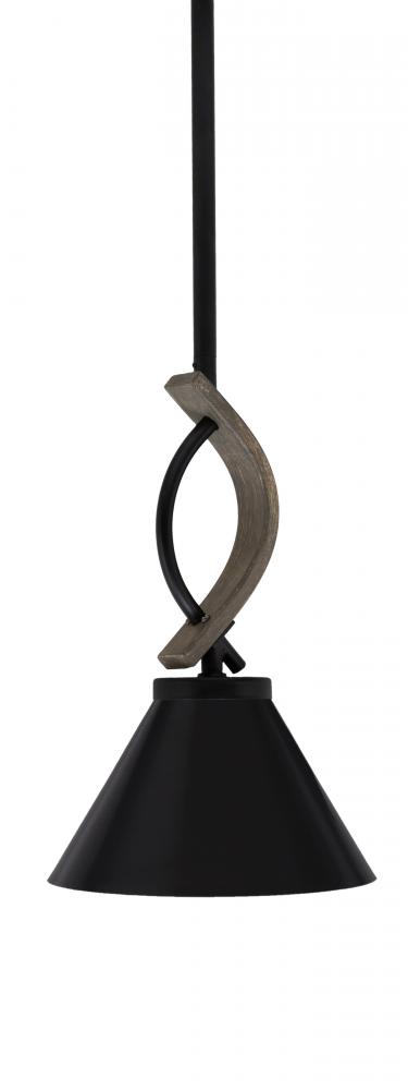 Toltec Lighting 2901-MBDW-421-MB Monterey 1 Light Mini Pendant Shown In Matte Black & Painted Distressed Wood-look Metal Finish With 7 Matte Black Cone Metal Shade