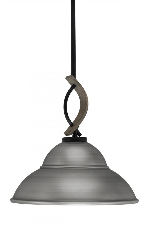 Toltec Lighting 2901-MBDW-428-BN Monterey 1 Light Mini Pendant Shown In Matte Black & Painted Distressed Wood-look Metal Finish With 13 Brushed Nickel Double Bubble Metal Shade