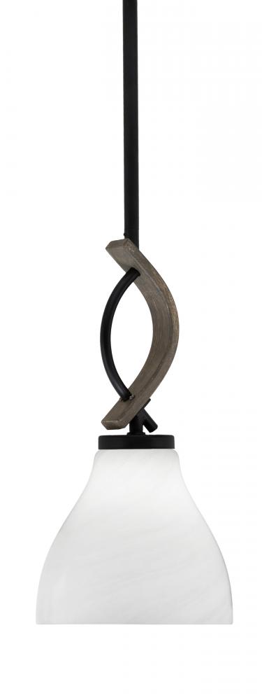 Toltec Lighting 2901-MBDW-4761 Monterey 1 Light Mini Pendant Shown In Matte Black & Painted Distressed Wood-look Metal Finish With 6.25 White Marble Glass