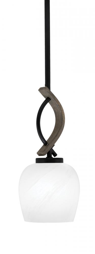 Toltec Lighting 2901-MBDW-4811 Monterey 1 Light Mini Pendant Shown In Matte Black & Painted Distressed Wood-look Metal Finish With 6 White Marble Glass
