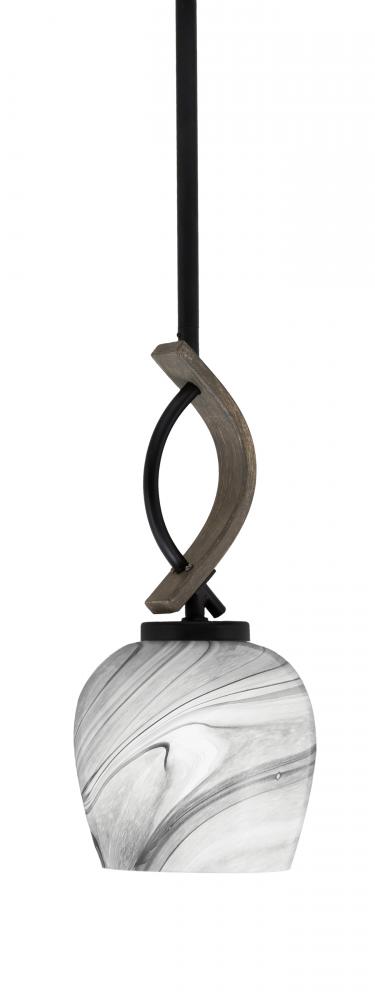 Toltec Lighting 2901-MBDW-4819 Monterey 1 Light Mini Pendant Shown In Matte Black & Painted Distressed Wood-look Metal Finish With 6 Onyx Swirl Glass